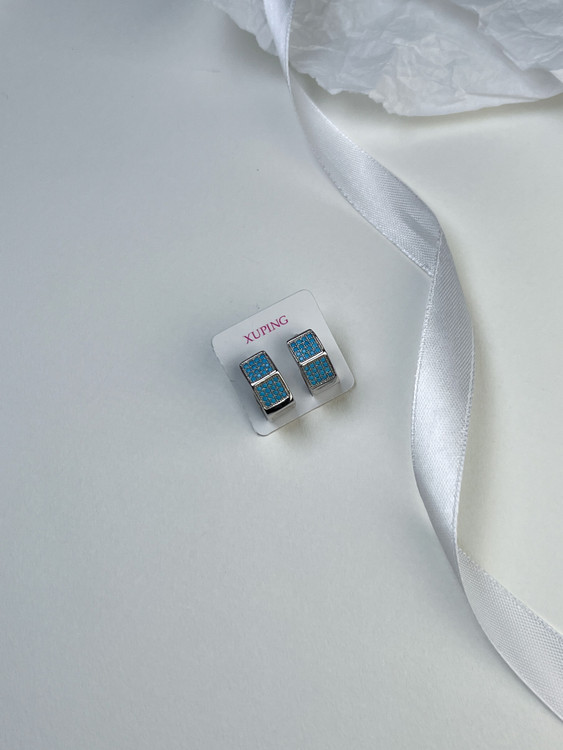 گوشواره نگین فیروزه ای (۵ضلعی)