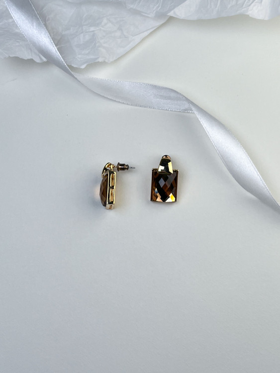 گوشواره میخی جذاب که با رنگ طلایی و سنگ قهوه ای ست شده🥹👌🏻